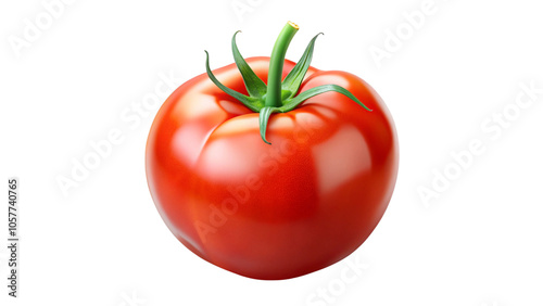 Fresh Ripe Red Tomato with Green Stem Isolated on a White Background