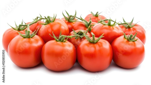 Fresh ripe tomatoes arranged neatly on a white background showcasing their vibrant color and natural freshness ideal for culinary or health themes.