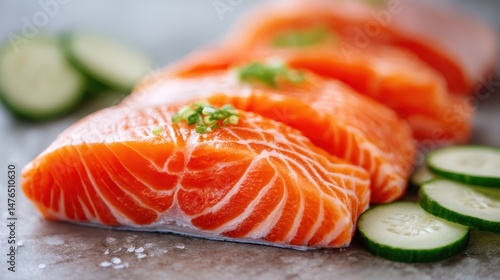 Fresh Salmon and Cus on Table - Gourmet Seafood Close Up