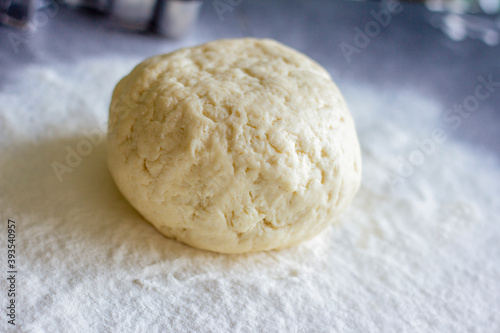 Fresh shortbread dough for baking Christmas cookies on the table.The concept of approaching the holiday.