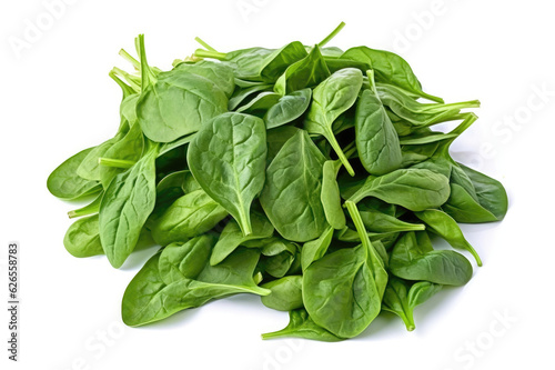 Fresh spinach leaves on a white background: Crisp and Nutritious: Fresh Harvest of Spinach Leaves on White Surface. Generative AI
