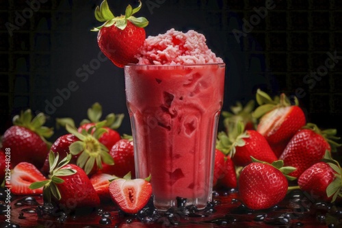 Fresh strawberry ice cream in a glass, ice cream, strawberry, AI generated, AI generated