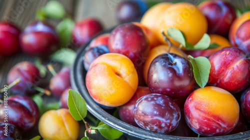 Fresh Summer Stone Fruits Assortment on Rustic Table