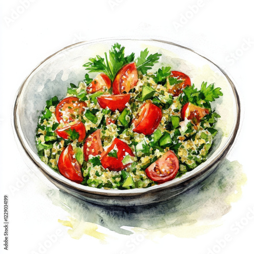 Fresh tabbouleh salad with tomatoes, parsley, and bulgur wheat