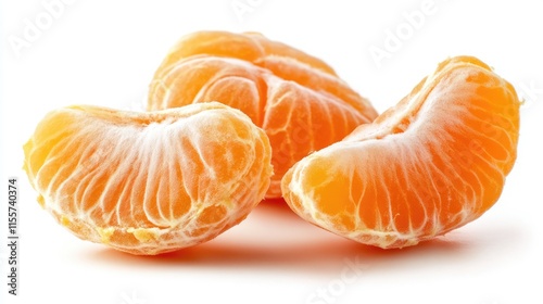 Fresh tangerine segments with vibrant orange color arranged on a white background showcasing natural textures and healthy food appeal