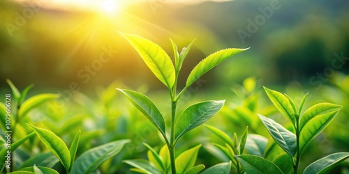 Fresh tea bud and leaves on a blurred background, tea, fresh, bud, leaves, plant, organic, natural, green, healthy, harvest