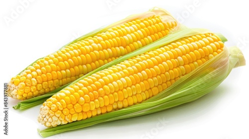 Fresh uncooked corn on white background with cutout