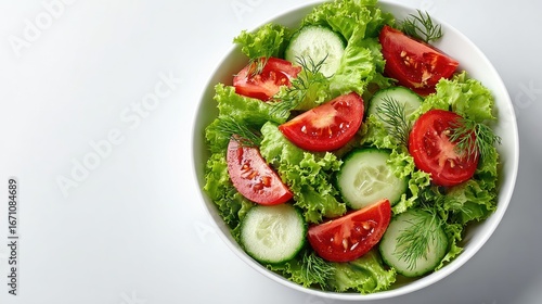 Fresh Vegetable Salad with Lettuce, Tomatoes, and Cucumbers in a Bowl
