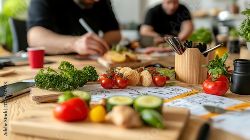 Fresh Vegetables and Recipe Plan on Wooden Table Culinary Class or Cooking Workshop Concept