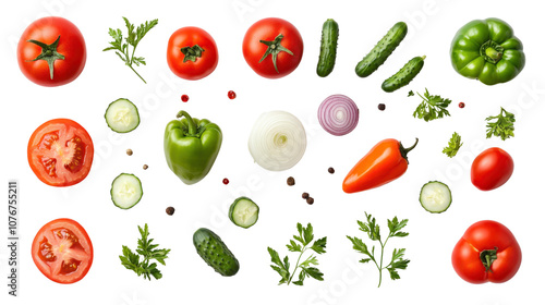 Fresh vegetables arranged on a white background, ideal for healthy eating concepts.