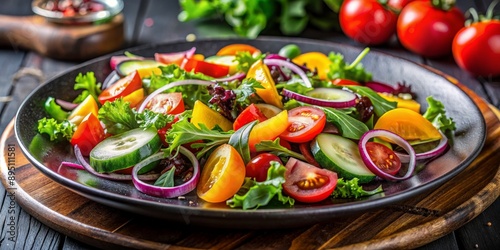 Fresh Veggie Salad on Black Plate, Salad , Healthy , Food , Vegetables