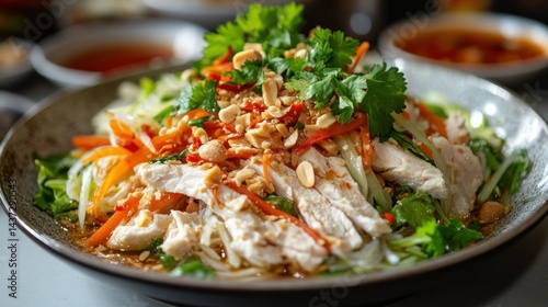 Fresh, vibrant chicken salad with shredded carrots, herbs, and peanuts