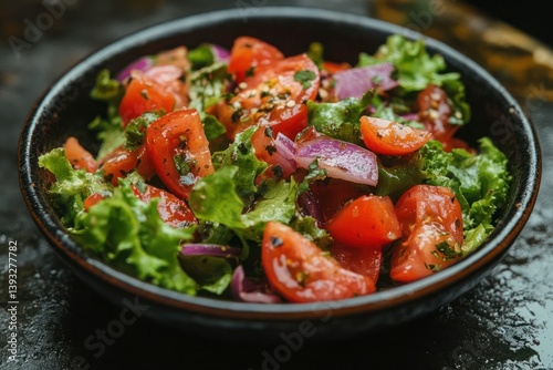 Fresh, vibrant salad with chopped tomatoes, onions, and lettuce