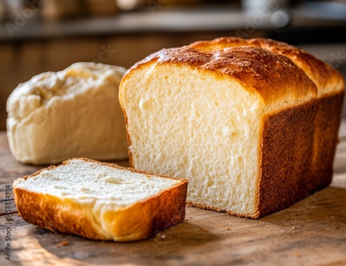 Freshly baked artisan loaf, sliced, with dough