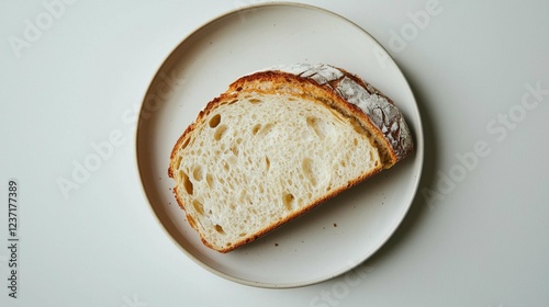 Freshly Baked Sourdough Bread Slice on White Plate with Texture