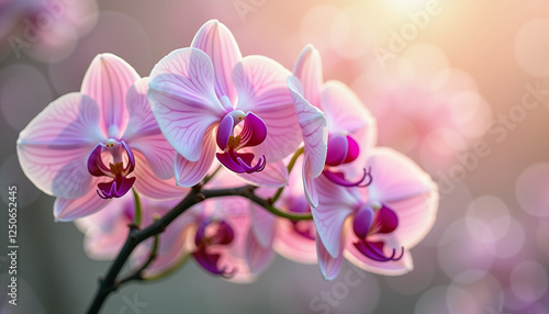 Freshly bloomed orchids glowing in soft sunlight