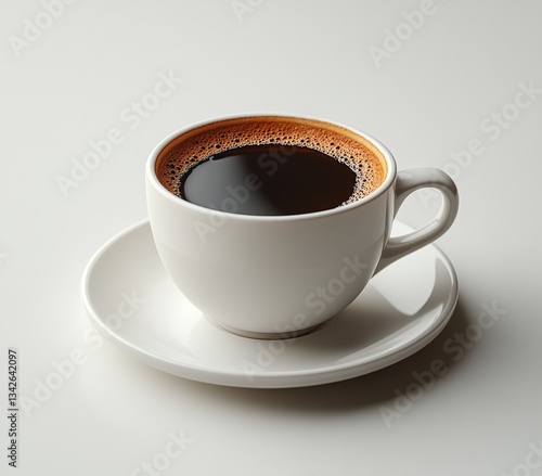 Freshly brewed black coffee in a white porcelain cup placed on a matching saucer against a clean background, ideal for coffee enthusiasts and lifestyle bloggers