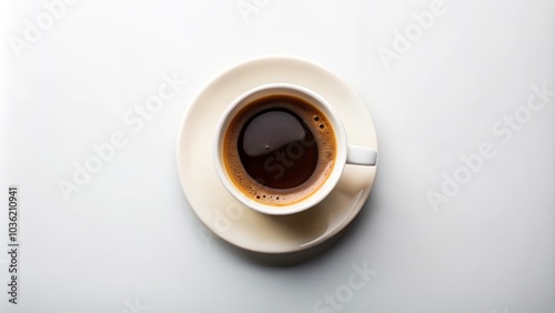 Freshly brewed cup of coffee is steaming on a white background with copy space
