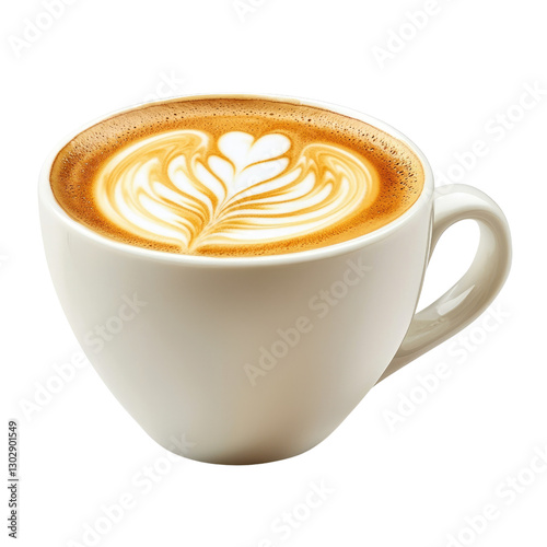 Freshly Brewed Latte Art in a Modern White Cup with Heart Shape Design on Top of Creamy Foam