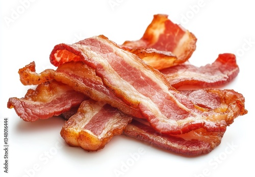 Freshly Cooked Crispy Bacon Strips with Delicious Texture and Flavor on White Background Ideal for Food Photography and Culinary Projects