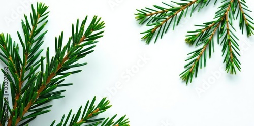 Freshly cut evergreen branches with needles isolated on white background, evergreen, forest, leaves