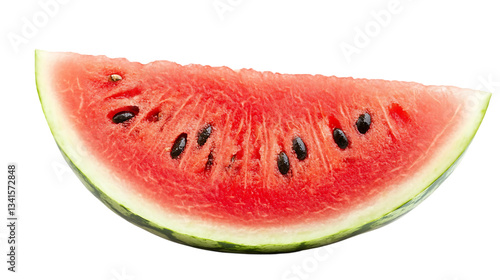 Freshly cut watermelon slice displaying vibrant red flesh and seeds