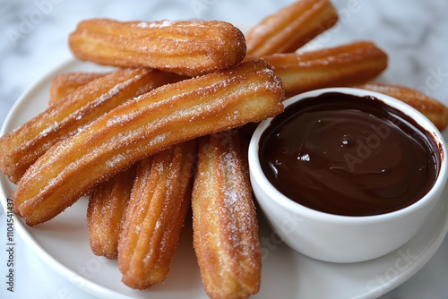 Freshly fried churros with rich dark chocolate dip.