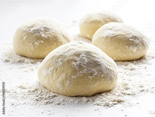 Freshly Made Dough Balls on a Flour Dusting Surface for Baking Bread or Pizza in a Well-Lit Kitchen Environment with Soft Focus Background