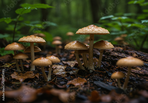 Freshly Rained-on Forest Floor with Mushrooms and Wet Leaves