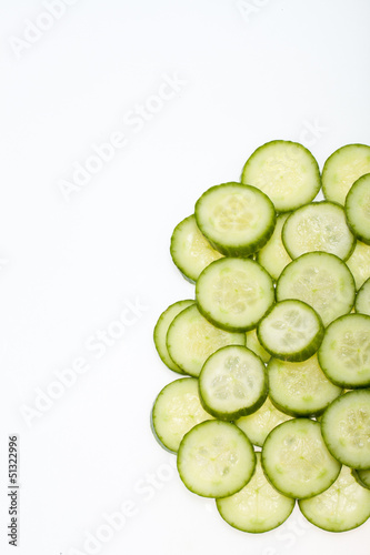 Freshly sliced cucumber isolated on white background