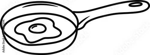 Fried Egg in Pan: A simple line drawing of a fried egg cooking in a frying pan, perfect for illustrating breakfast recipes, culinary themes, or kitchen-related concepts.