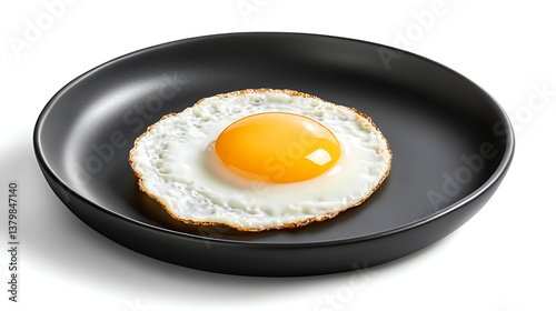 Fried egg mock up on black plate culinary art minimalist style studio setting close-up view raw ingredients