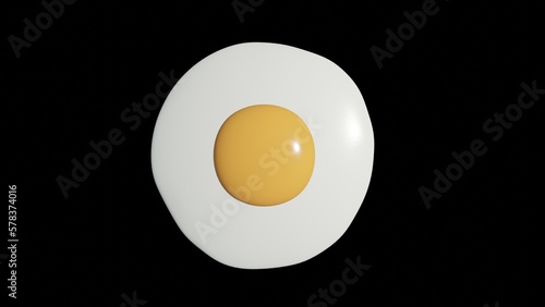 fried egg on Black Background, 3D rendering.