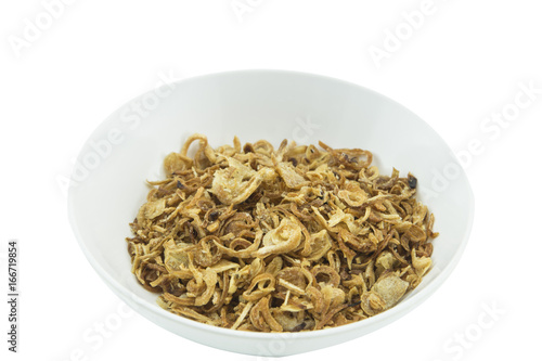 fried onion isolate on white background.