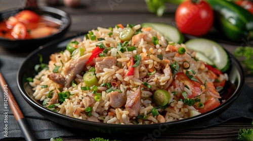 Fried Rice with Pork decorate with carved Cucumber spread