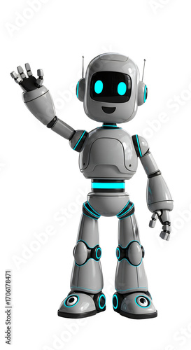 Friendly Robot Character Waving Hello Isolated on Black Background for Business and Technology Use