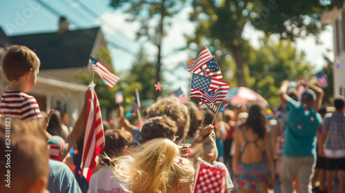 Friends and Family Celebrating The American Holiday at the Parade. Generatvie AI.