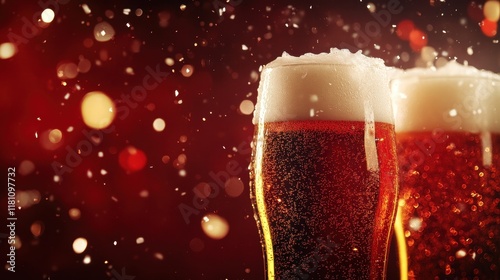 Friends are happy drinking beer and clinking glasses at a bar or pub with fireworks,countdown,Celebration New Year's Eve,Design for posters, banners and greeting cards,Luxury template,copy space.