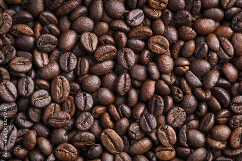 From above coffee beans textured background