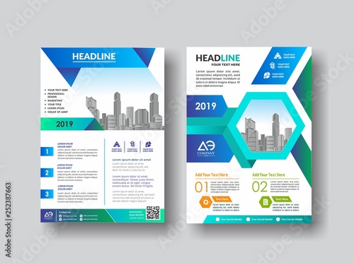 Front and back cover of a modern business brochure layout or flyer template, poster, magazine, annual report, book, booklet with red circle and gray design. Size A4