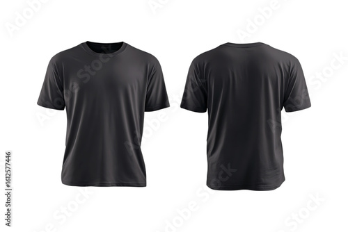 Front and back view of a plain dark gray short sleeved t shirt mockup isolated on transparent background