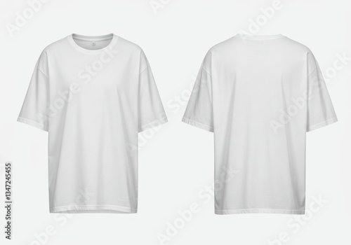 Front and back view of a plain white oversized t shirt isolated on a white background studio shot