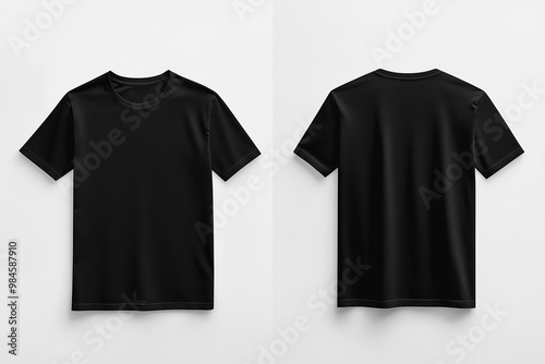 Front and Back View of Blank Black T-Shirt Mockup Isolated on White Background for Design and Print Presentation