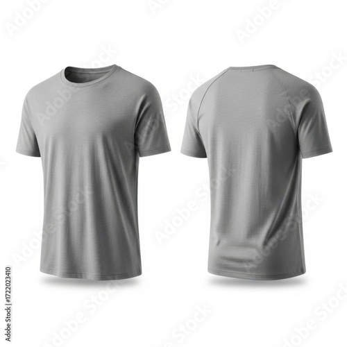 Front and back views of a plain gray crew neck t-shirt displayed studio product photography