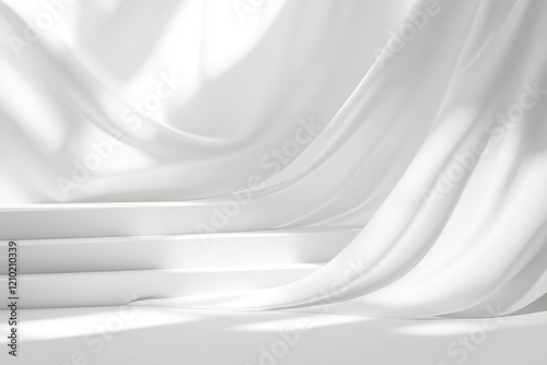 Front view Dsiplay product photo studio template mockup with white fabric cloth background
