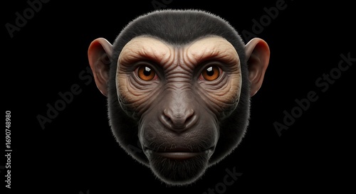 Front view of monkey head face isolated on black background. Wildlife photo concept