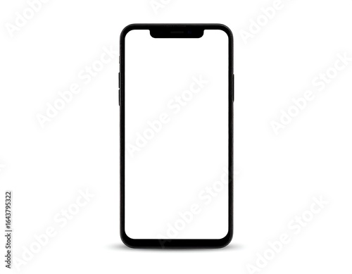 Front view of a modern frameless smartphone with a blank white screen. Mobile device mockup template for UI presentation on a white background.