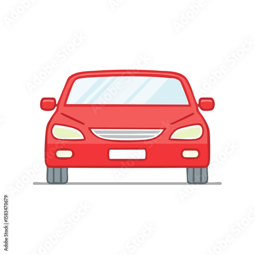 Front View of a Red Cartoon Car Illustration Vehicle Automobile Transportation Flat Design Isolated on Black Background
