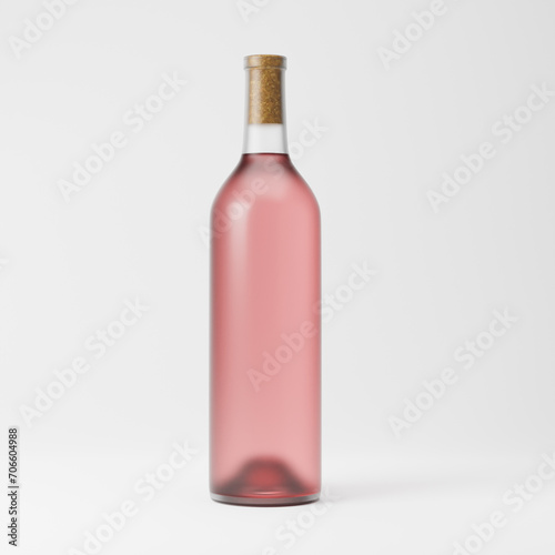 Frosted clear glass bottle of rose wine isolated over white background. Mockup template. 3d rendering.