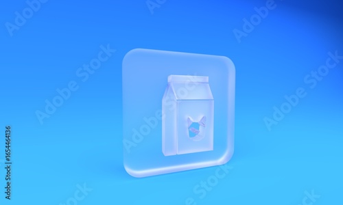 Frosted glass Bag of food for dog icon isolated on blue background. Food for animals. Pet food package. Square frosted glass button. 3D render illustration